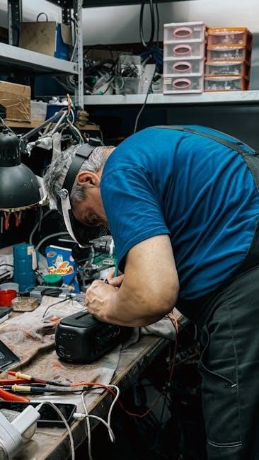 Resolving common issues with 4-way switch wiring often involves addressing misconnections or faulty installations. A frequent problem is incorrect traveler wire connections, which can prevent lights from turning on or off properly. To fix this, ensure the traveler wires are correctly linked between switches. Another issue is the misidentification of the “common” terminal, leading to malfunctioning switches. Verify the common terminal is connected to the power source or load, depending on its position. Loose or corroded connections can also disrupt the circuit, so tighten all terminals and clean corroded wires. If lights flicker or dim, check for overloaded circuits or incorrect wire gauges. Referencing the wiring diagram and using a multimeter to test connections can help pinpoint and resolve these issues efficiently, ensuring reliable operation of your lighting system.